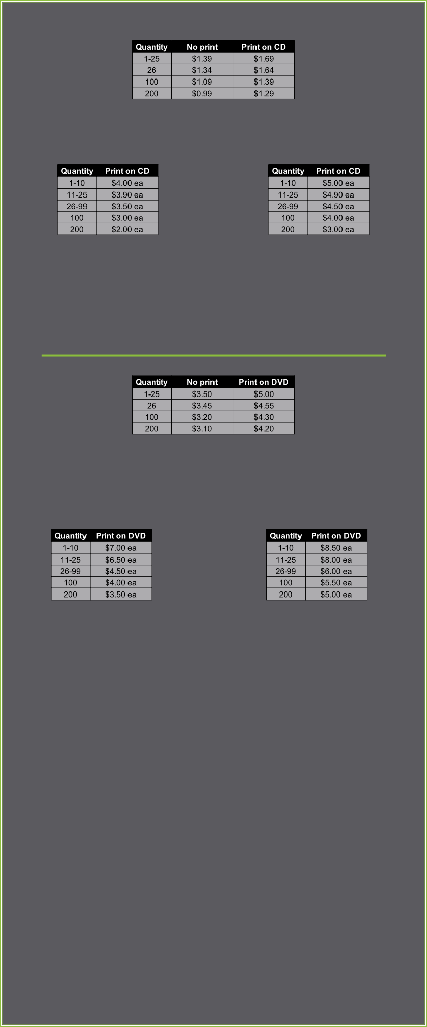 All Price Quotes above are with Client’s providing their own artwork. To use the services of our In-House Artist from start to finish is $15 per hour.